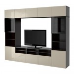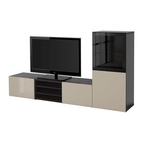 БЕСТО Шкаф для ТВ, комбин/стеклян дверцы - черно-коричневый/Сельсвикен глянцевый/бежевый прозрачное стекло, направляющие ящика, плавно закр