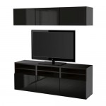 БЕСТО Шкаф для ТВ, комбин/стеклян дверцы - черно-коричневый/Сельсвикен глянцевый/черный дымчатое стекло, направляющие ящика, плавно закр
