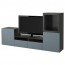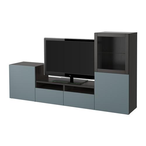 БЕСТО Шкаф для ТВ, комбин/стеклян дверцы - черно-коричневый/Вальвикен серо-бирюзовый, прозрачное стекло, направляющие ящика,нажимные