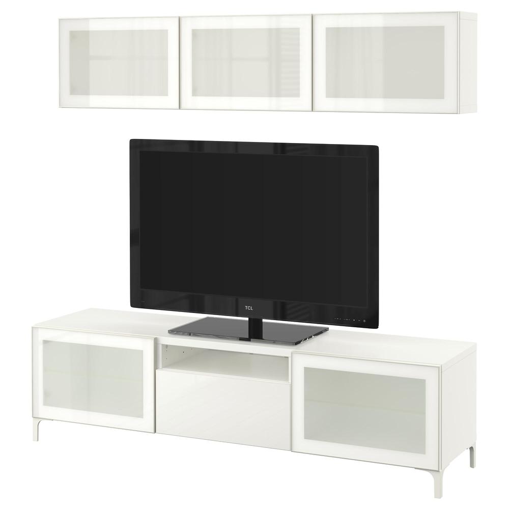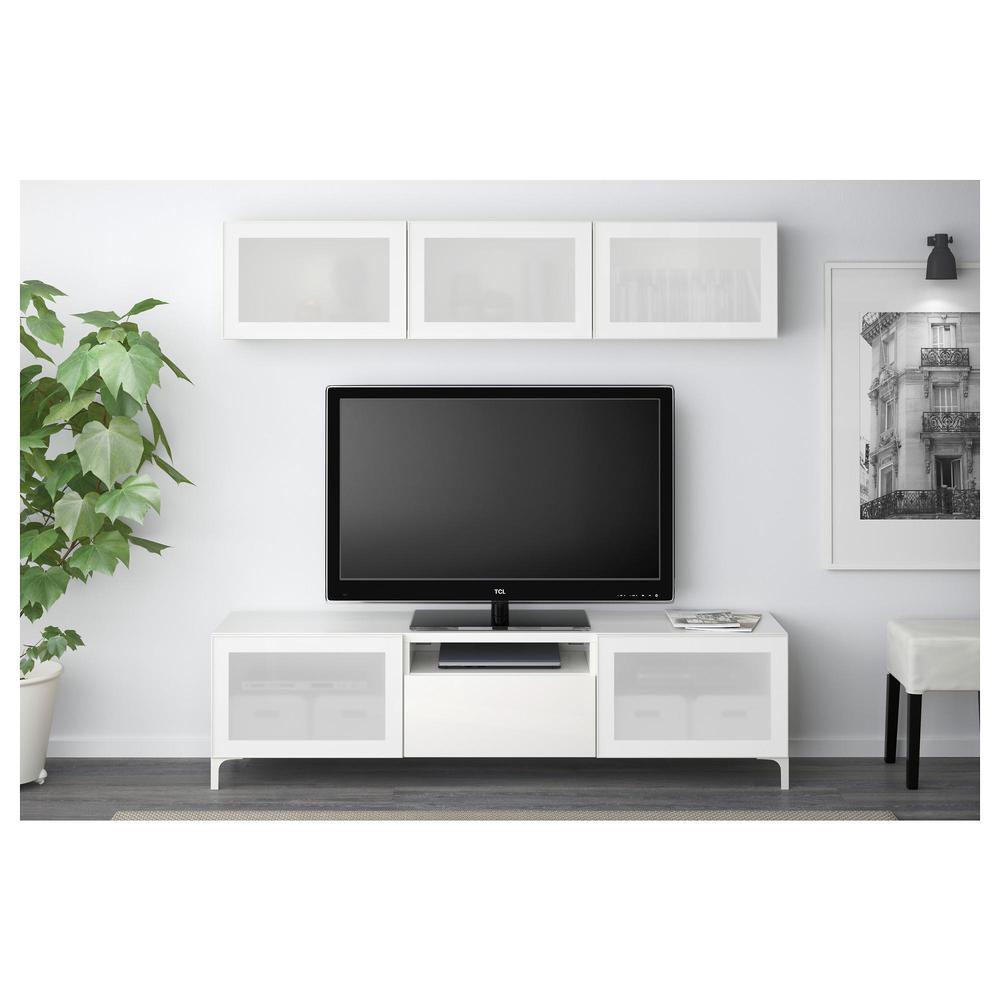 БЕСТО Шкаф для ТВ, комбин/стеклян дверцы - белый/Сельсвикен глянцевый/белый матовое стекло, направляющие ящика,нажимные