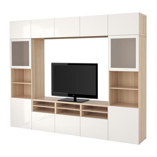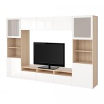 БЕСТО Шкаф для ТВ, комбин/стеклян дверцы - под беленый дуб/Сельсвикен глянцевый/белый матовое стекло, направляющие ящика,нажимные