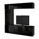 БЕСТО Шкаф для ТВ, комбин/стеклян дверцы - черно-коричневый/Сельсвикен глянцевый/черный прозрачное стекло, направляющие ящика, плавно закр