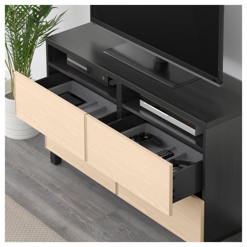БЕСТО Тумба д/ТВ с ящиками - черно-коричневый/Инвикен ясеневый шпон, направляющие ящика, плавно закр