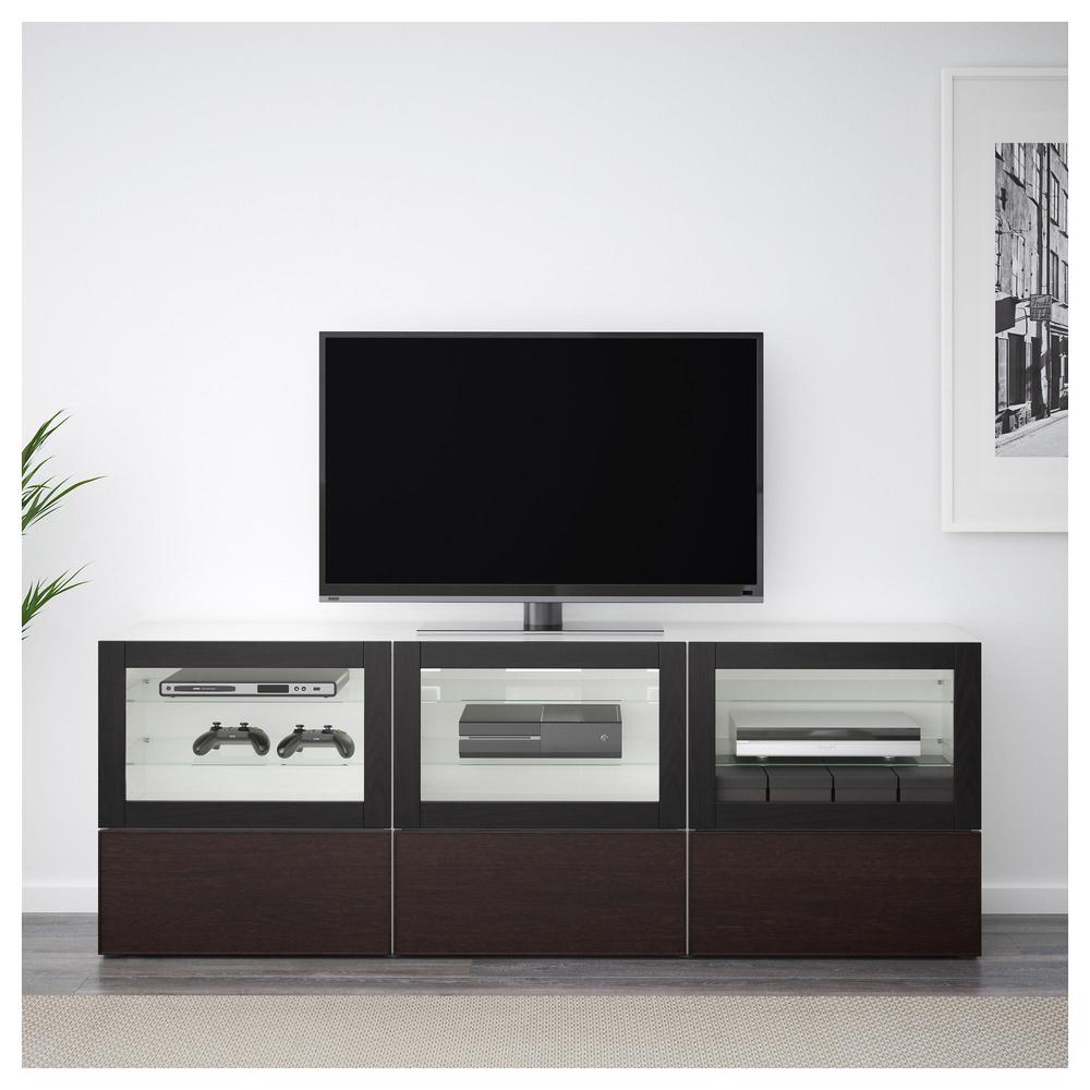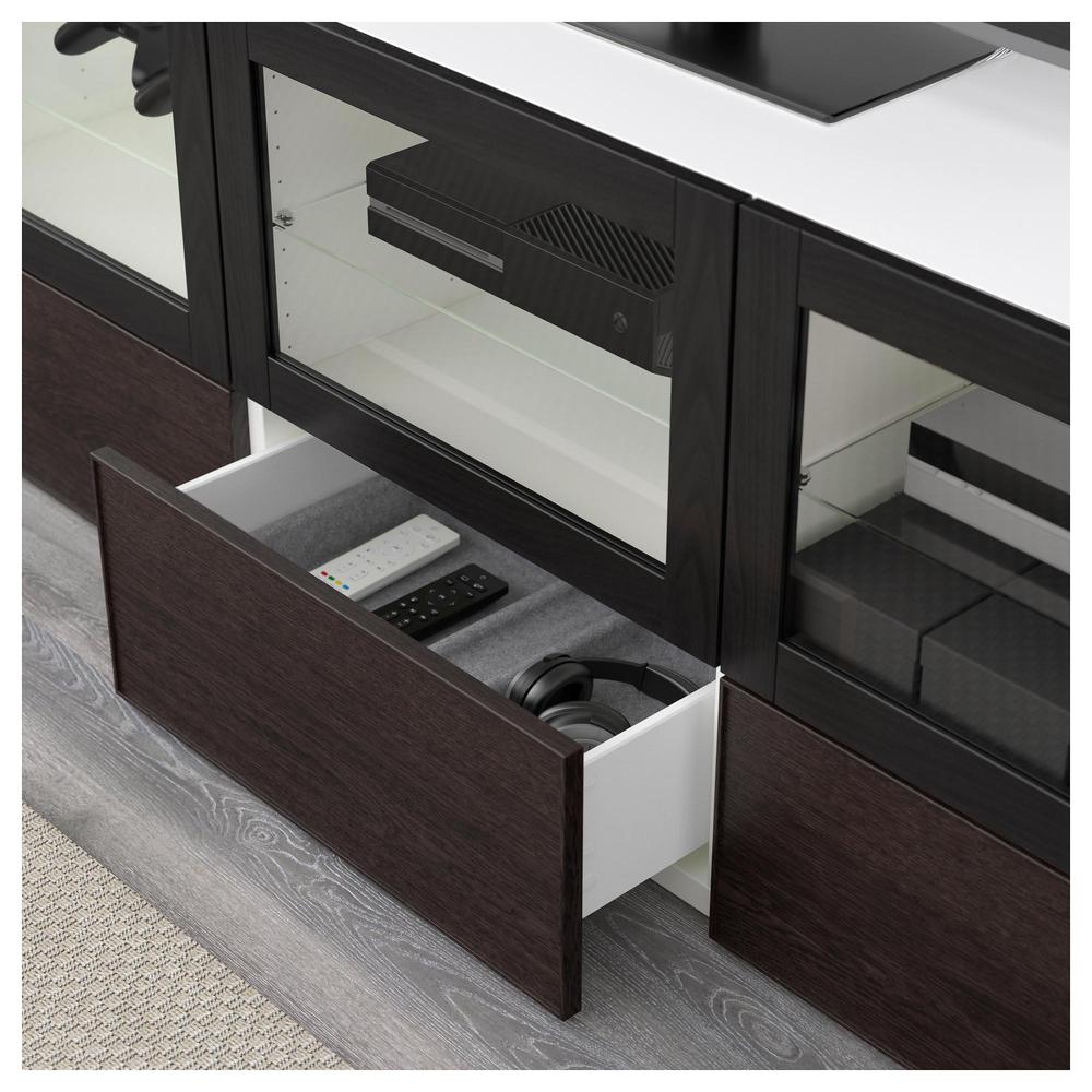 БЕСТО Тумба под ТВ, с дверцами и ящиками - белый Синдвик/Инвикен черно-коричневый прозрачное стекло, направляющие ящика, плавно закр 0.0/5 оценка (0 голосов)