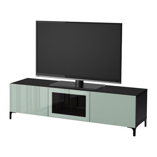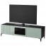 БЕСТО Тумба под ТВ с ящиками и дверцей - черно-коричневый Сельсвикен/глянцевый/серо-зеленый светлый прозрачное стекло, направляющие ящика, плавно закр