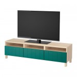 БЕСТО Тумба д/ТВ с ящиками - под беленый дуб/Халлставик сине-зеленый, направляющие ящика,нажимные