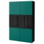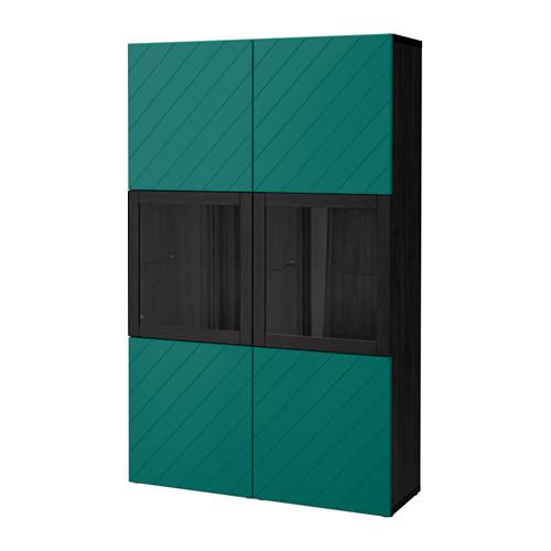 БЕСТО Комбинация д/хранения+стекл дверц - черно-коричневый Халлставик/сине-зеленый прозрачное стекло