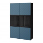БЕСТО Комбинация д/хранения+стекл дверц - под беленый дуб Халлставик/темно-синий прозрачное стекло