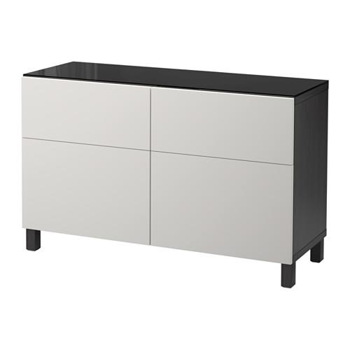 БЕСТО Комбинация для хранения с ящиками - черно-коричневый/Лаппвикен светло-серый, направляющие ящика,нажимные