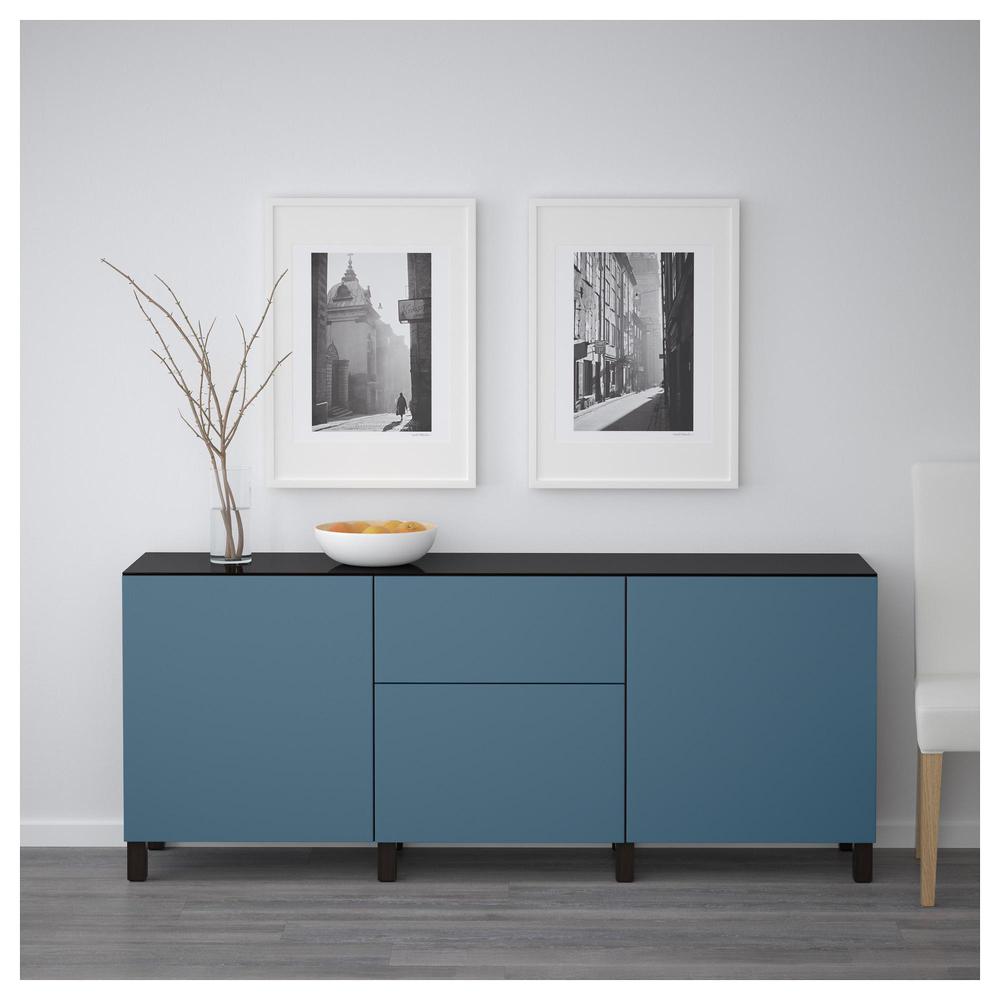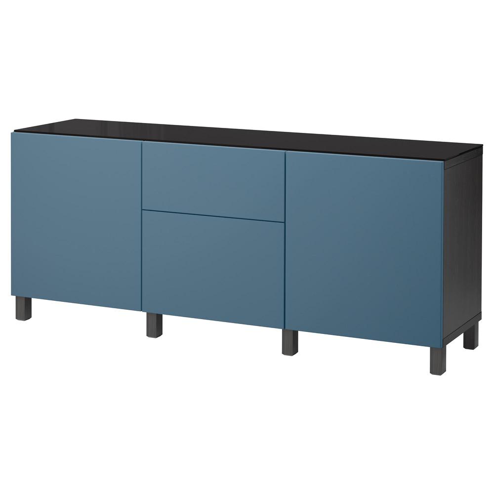 БЕСТО Комб для хран с дверц/ящ - черно-коричневый/Вальвикен темно-синий, направляющие ящика,нажимные