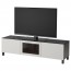 БЕСТО Тумба под ТВ, с дверцами - черно-коричневый Синдвик/Лаппвикен светло-серый прозрачное стекло, 180x40x48 см, направляющие ящика,нажимные