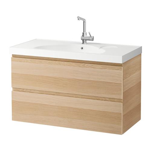 ГОДМОРГОН / ЭДЕБОВИКЕН Шкаф для раковины с 2 ящ - под беленый дуб