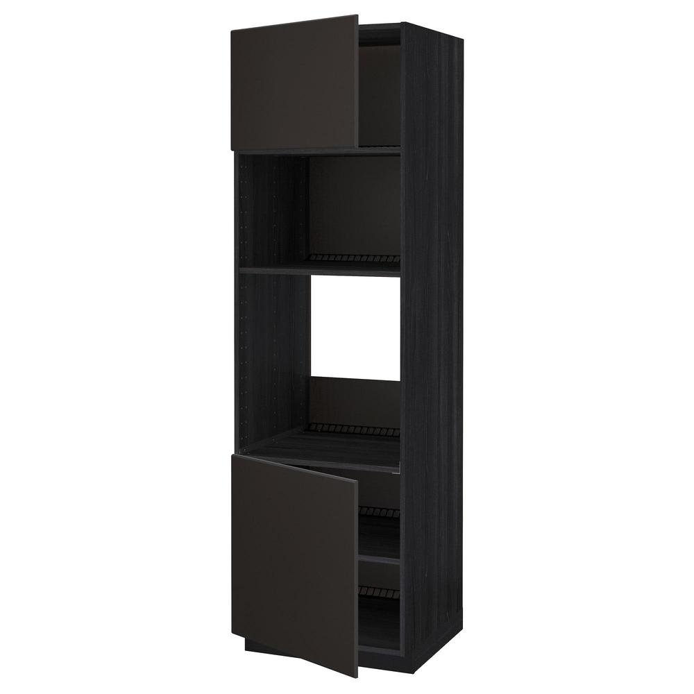 МЕТОД Выс шкаф д/духовки/СВЧ/2 дв/полки - под дерево черный, Кунгсбакка антрацит, 60x60x200 см