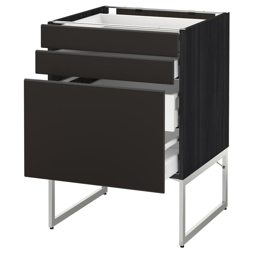 МЕТОД / МАКСИМЕРА Напольн шкаф 3фронт пнл/2низ/2ср ящ - под дерево черный, Кунгсбакка антрацит, 60x60x60 см