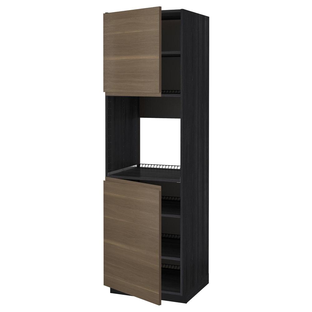 МЕТОД Высок шкаф д/духовки/2дверцы/полки - под дерево черный, Воксторп под грецкий орех, 60x60x200 см