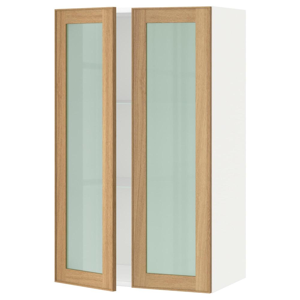 МЕТОД Навесной шкаф с полками/2 стекл дв - белый, Экестад дуб, 60x100 см