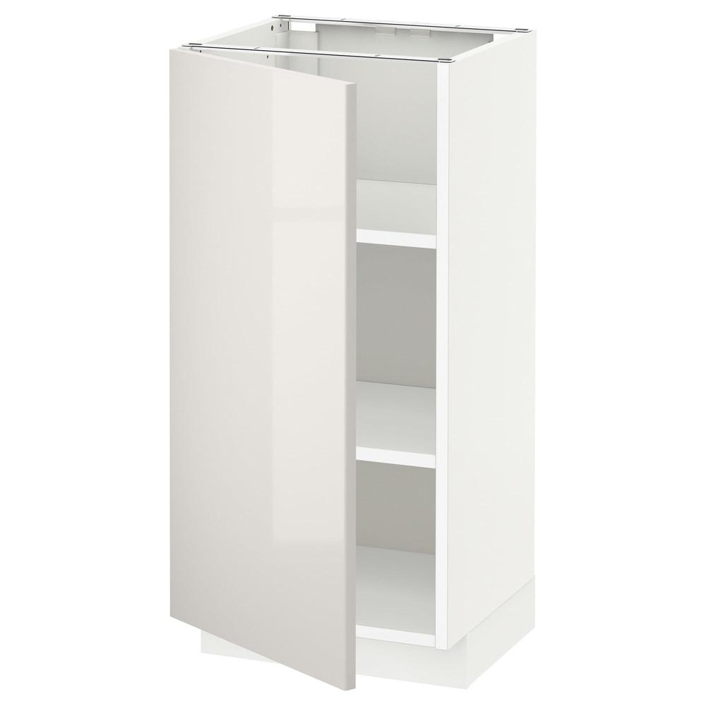 МЕТОД Напольный шкаф с полками - белый, Рингульт глянцевый светло-серый, 40x37 см