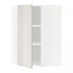 МЕТОД Угловой навесной шкаф с полками - белый, Рингульт глянцевый светло-серый, 68x80 см