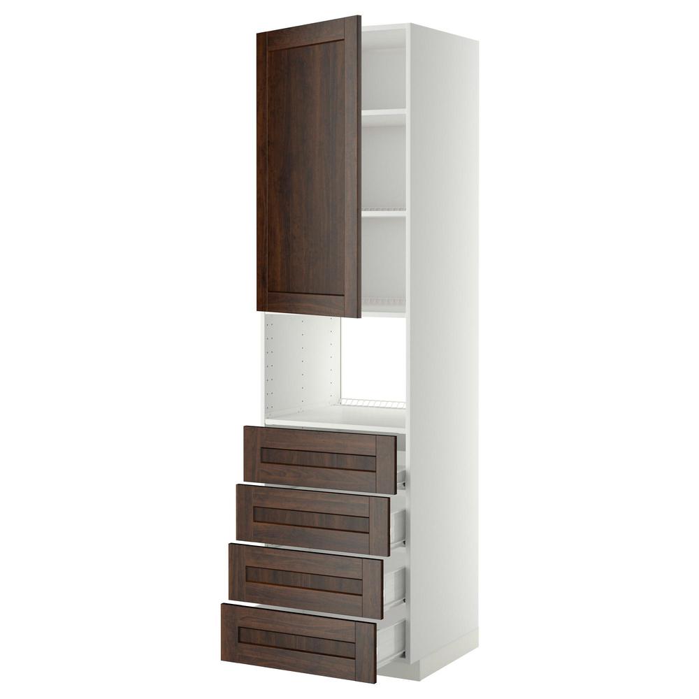 МЕТОД / ФОРВАРА Высок шкаф д/духовки/дверца/4ящика - белый, Эдсерум под дерево коричневый, 60x60x220 см