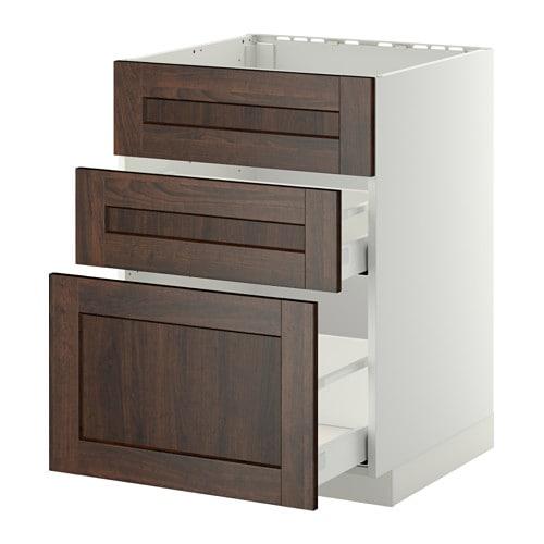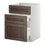 МЕТОД / МАКСИМЕРА Напольн шк п-мойку+3фрнт пнл/2ящ - белый, Эдсерум под дерево коричневый, 60x60 см
