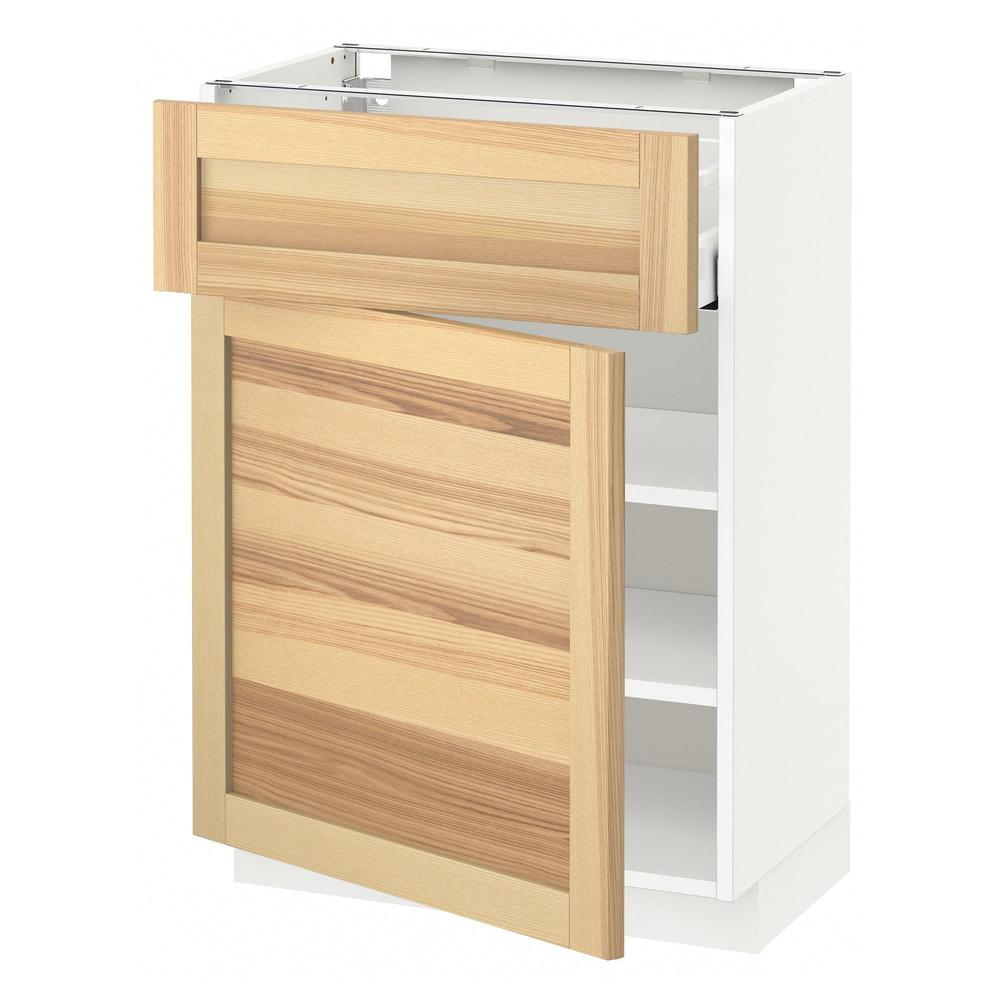МЕТОД / МАКСИМЕРА Напольный шкаф с ящиком/дверью - белый, Торхэмн естественный ясень, 60x37 см