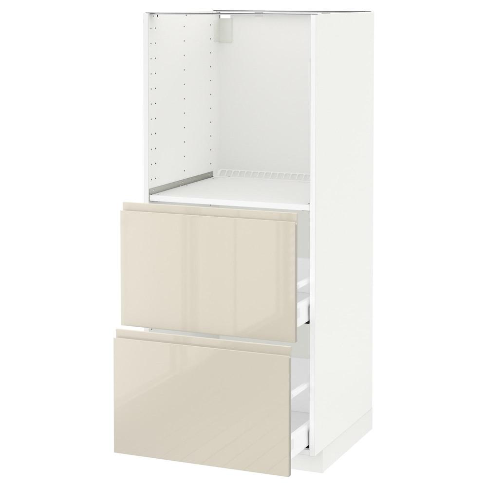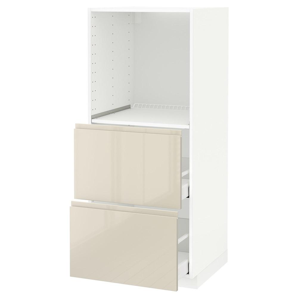 МЕТОД / МАКСИМЕРА Высокий шкаф с 2 ящиками д/духовки - белый, Воксторп глянцевый светло-бежевый