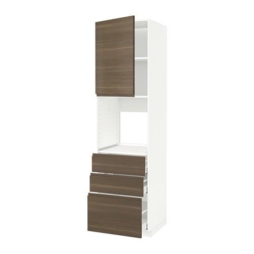 МЕТОД / МАКСИМЕРА Высокий шкаф д/духовки/дверь/3ящика - белый, Воксторп под грецкий орех, 60x60x220 см