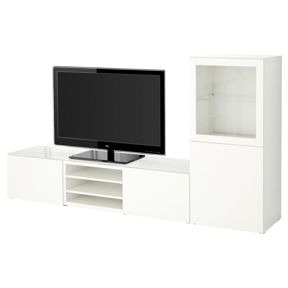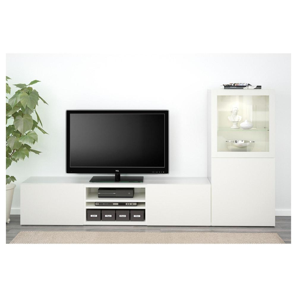 БЕСТО Шкаф для ТВ, комбин/стеклян дверцы - белый Лаппвикен/Синдвик белый прозрачное стекло, направляющие ящика,нажимные