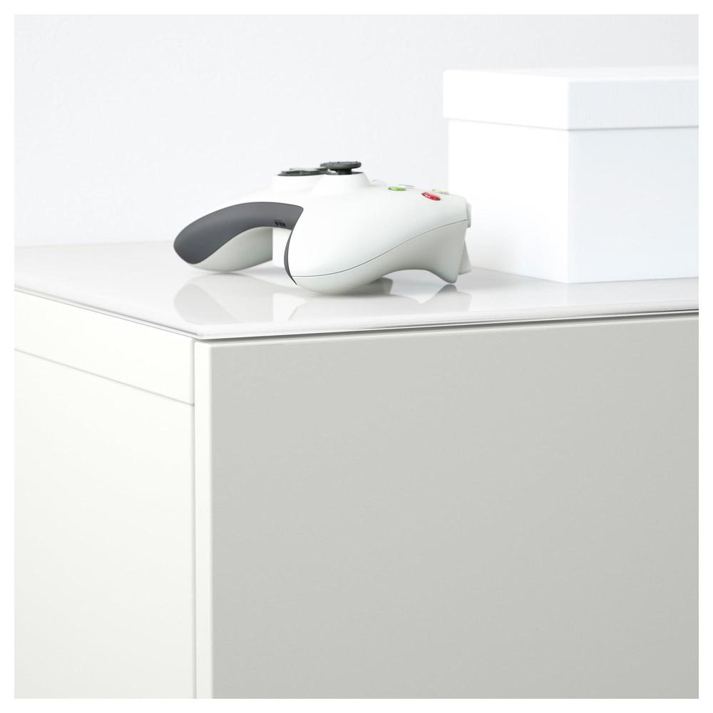 -Панель из закаленного стекла защищает верхнюю панель тумбы под ТВ и делает ее стильной.
