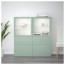 БЕСТО Комбинация д/хранения+стекл дверц - белый Сельсвикен/глянцевый/серо-зеленый светлый прозрачное стекло, направляющие ящика,нажимные