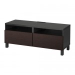 БЕСТО Тумба д/ТВ с ящиками - черно-коричневый/Инвикен черно-коричневый, направляющие ящика,нажимные