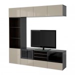 БЕСТО Шкаф для ТВ, комбин/стеклян дверцы - черно-коричневый/Сельсвикен глянцевый/бежевый прозрачное стекло, направляющие ящика, плавно закр