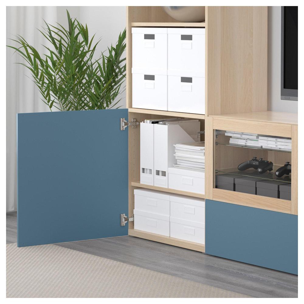 БЕСТО Шкаф для ТВ, комбин/стеклян дверцы - под беленый дуб Вальвикен/темно-синий прозрачное стекло, направляющие ящика,нажимные