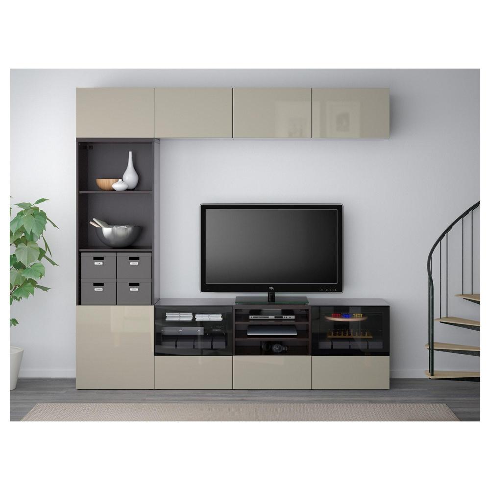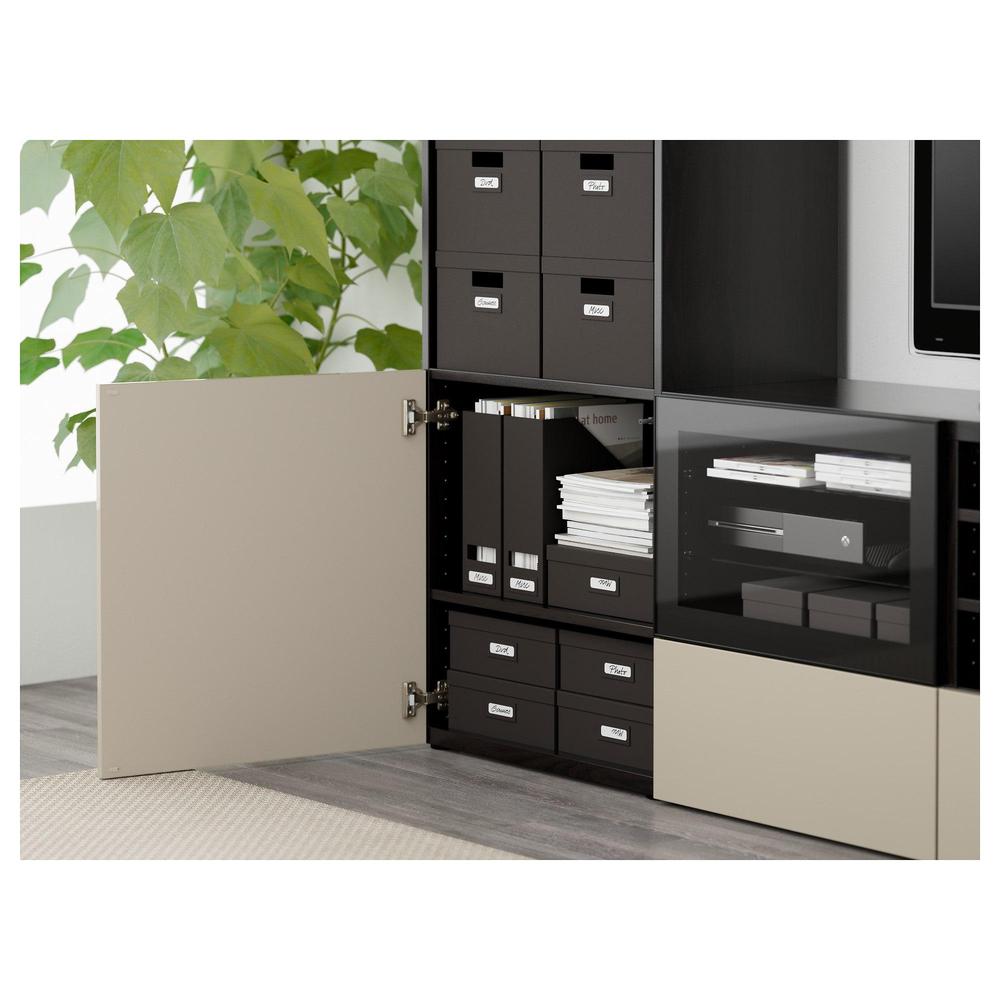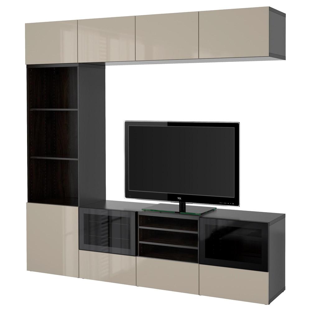 БЕСТО Шкаф для ТВ, комбин/стеклян дверцы - черно-коричневый/Сельсвикен глянцевый/бежевый прозрачное стекло, направляющие ящика, плавно закр
