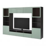 БЕСТО Шкаф для ТВ, комбин/стеклян дверцы - черно-коричневый Сельсвикен/глянцевый/серо-зеленый светлый прозрачное стекло, направляющие ящика,нажимные