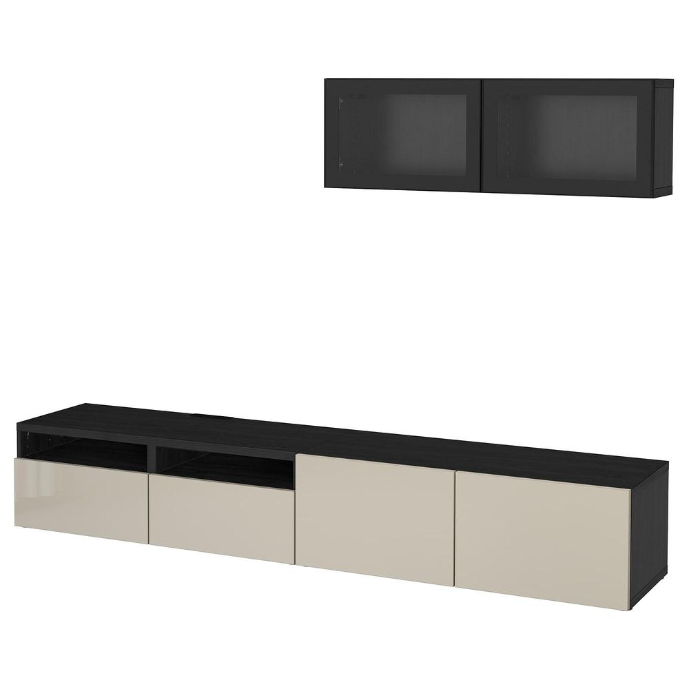 БЕСТО Шкаф для ТВ, комбин/стеклян дверцы - черно-коричневый/Сельсвикен глянцевый/бежевый прозрачное стекло, направляющие ящика, плавно закр