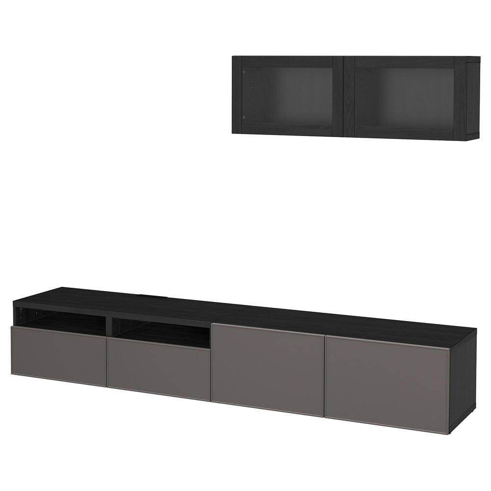 БЕСТО Шкаф для ТВ, комбин/стеклян дверцы - черно-коричневый Грундсвикен/темно-серый прозрачное стекло, направляющие ящика, плавно закр