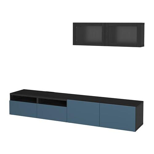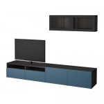 БЕСТО Шкаф для ТВ, комбин/стеклян дверцы - черно-коричневый Вальвикен/темно-синий прозрачное стекло, направляющие ящика, плавно закр