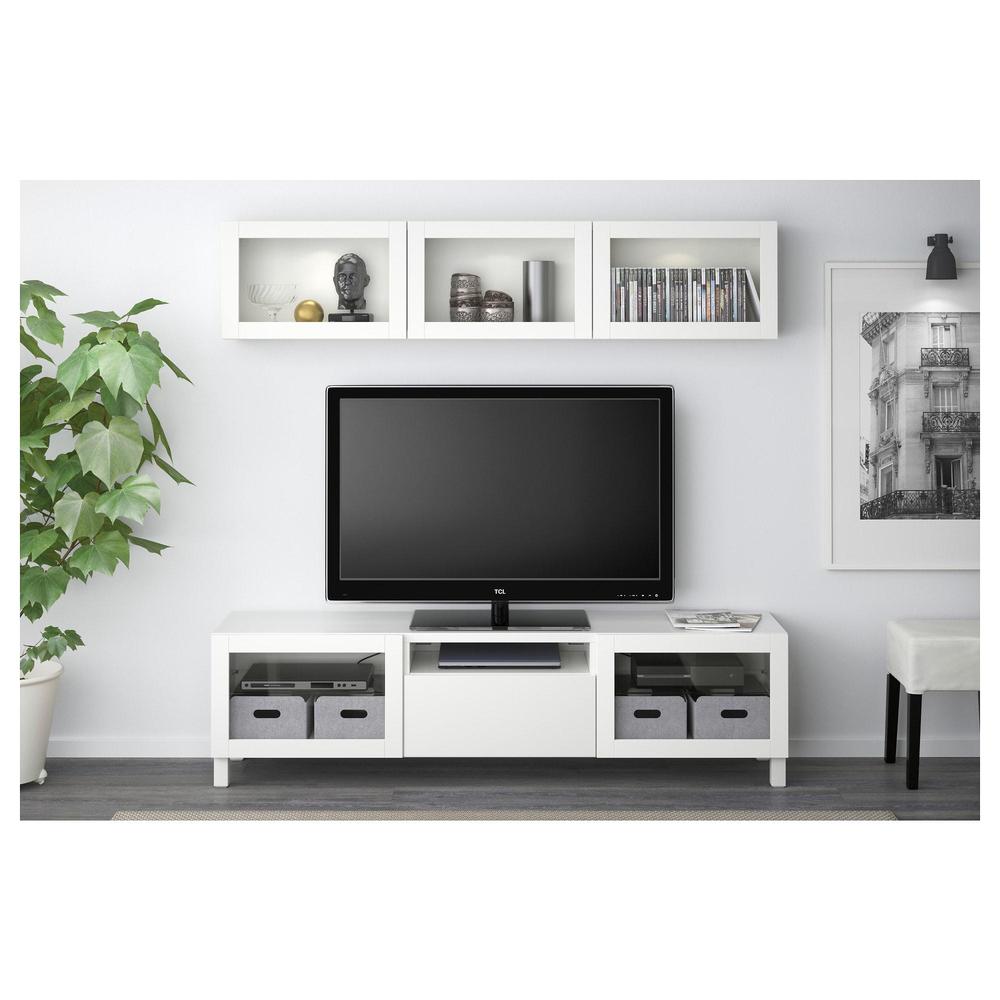 БЕСТО Шкаф для ТВ, комбин/стеклян дверцы - Лаппвикен/Синдвик белый прозрачное стекло, направляющие ящика, плавно закр