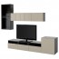 БЕСТО Шкаф для ТВ, комбин/стеклян дверцы - черно-коричневый/Сельсвикен глянцевый/бежевый прозрачное стекло, направляющие ящика,нажимные