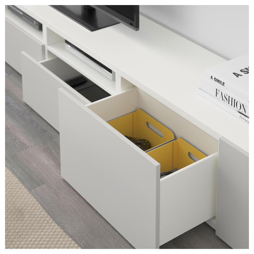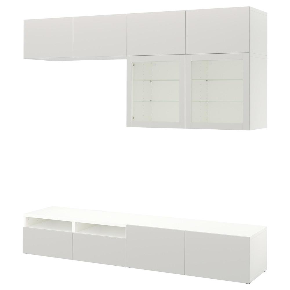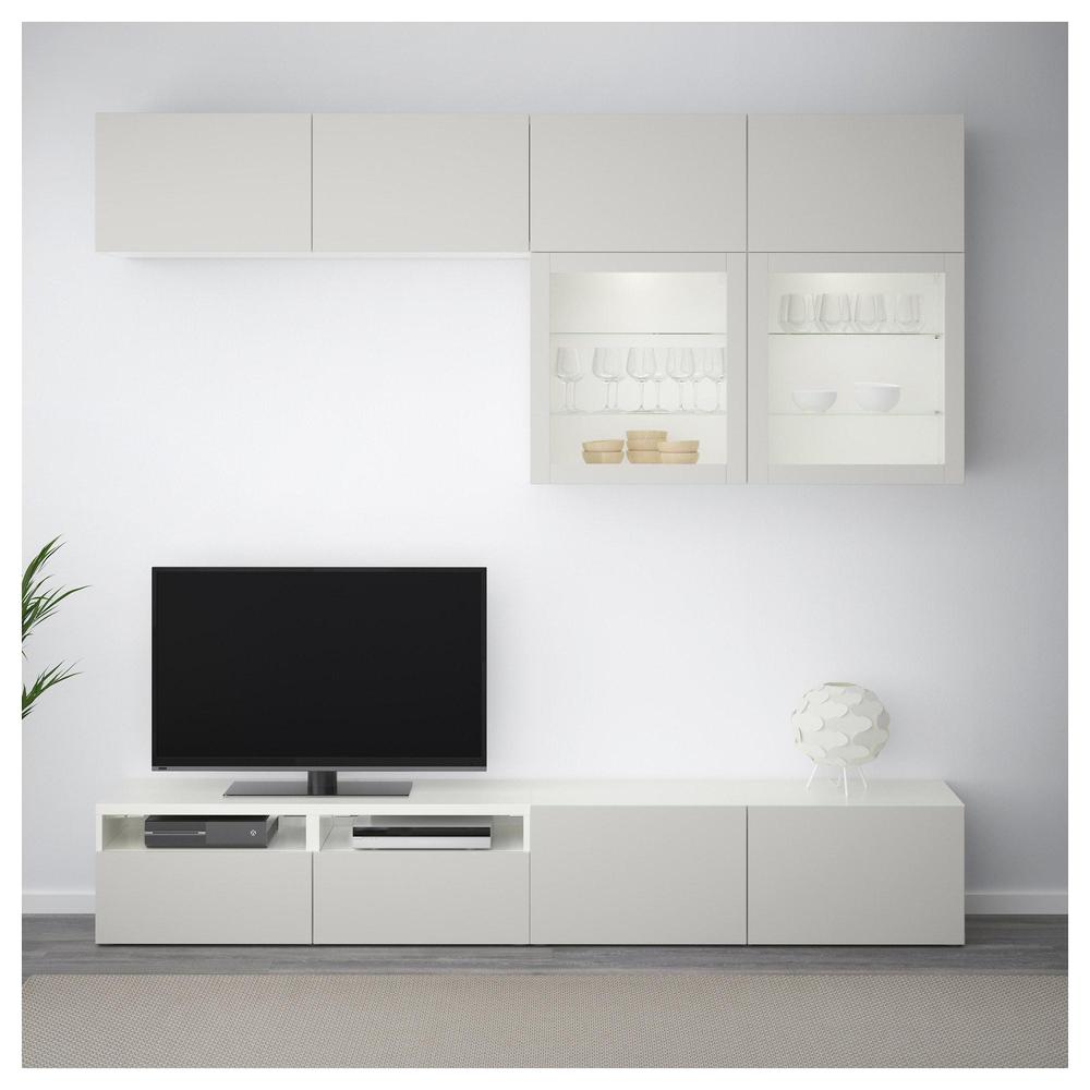 БЕСТО Шкаф для ТВ, комбин/стеклян дверцы - белый Лаппвикен/Синдвик светло-серый прозрачное стекло, направляющие ящика, плавно закр