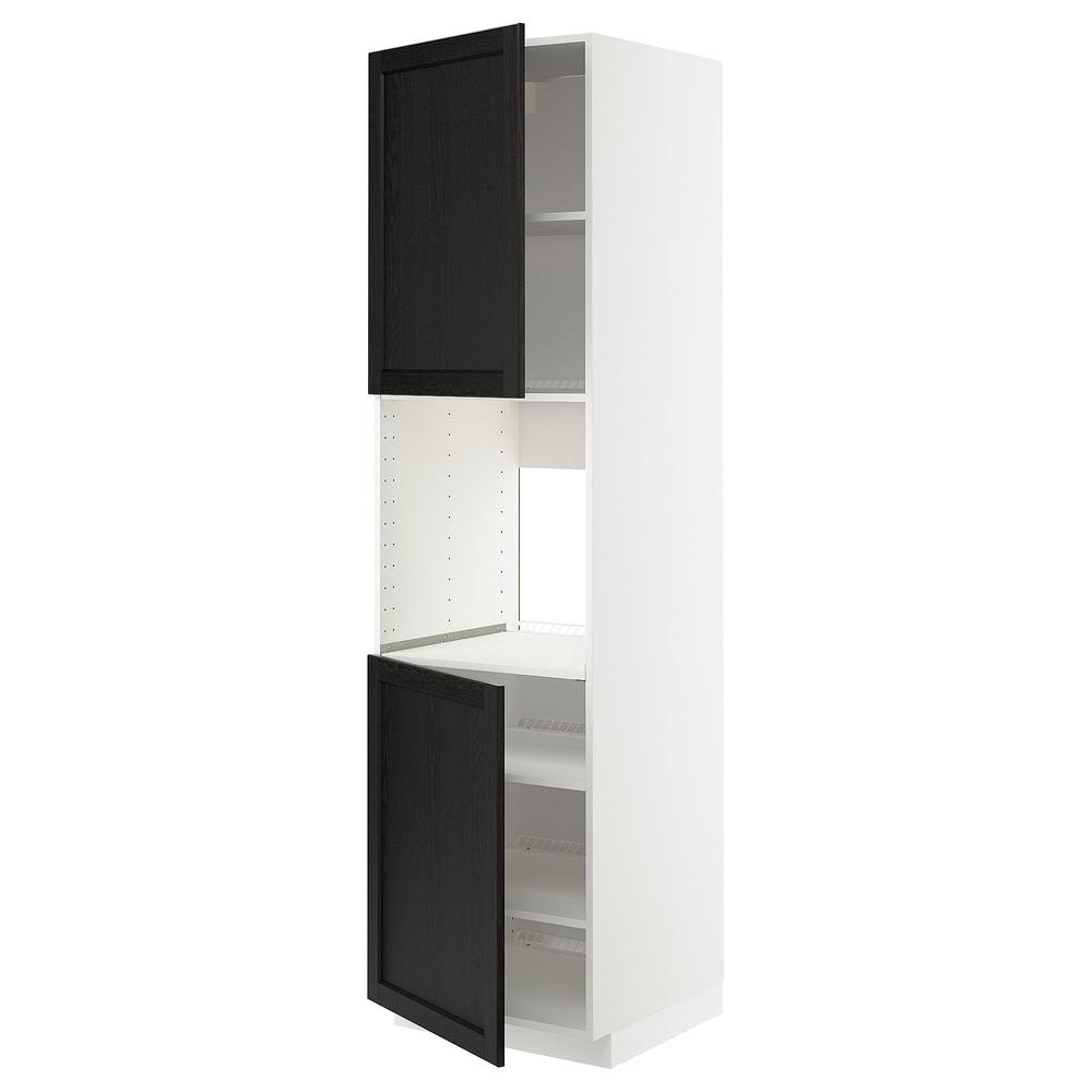 МЕТОД Высок шкаф д/духовки/2дверцы/полки - белый, Лерх черная морилка, 60x60x220 см