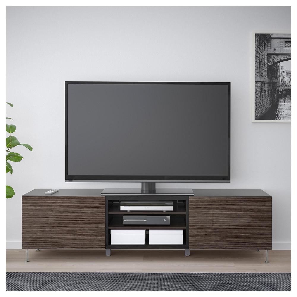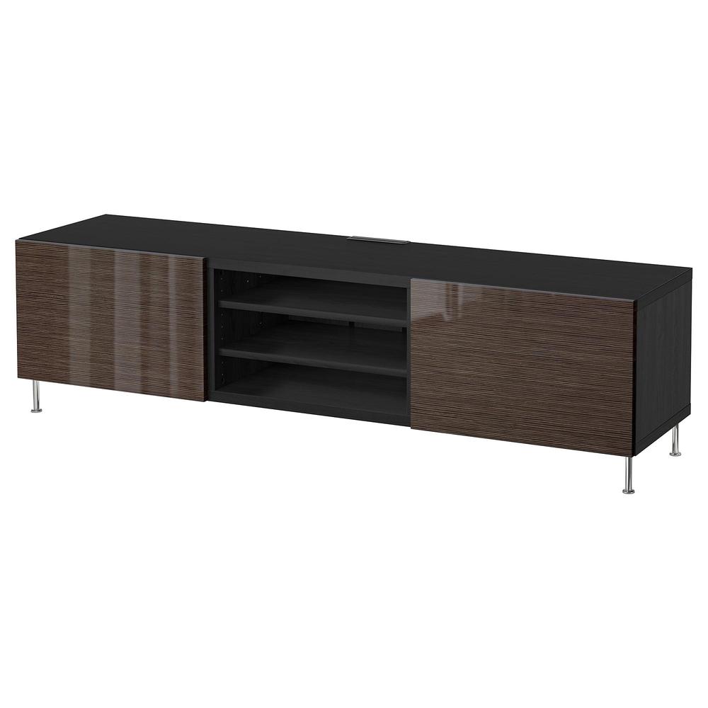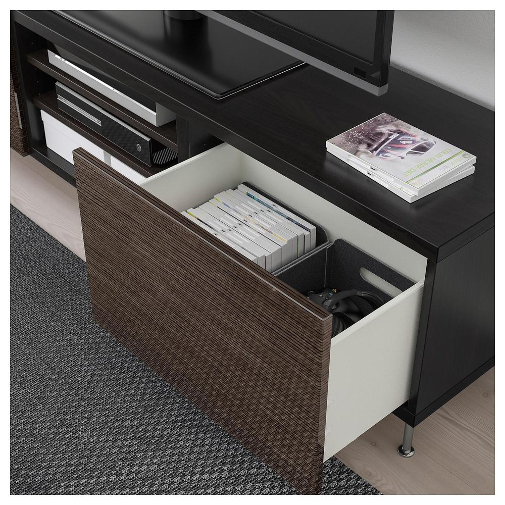 БЕСТО Тумба д/ТВ с ящиками - черно-коричневый глянцевый/коричневый, направляющие ящика,нажимные