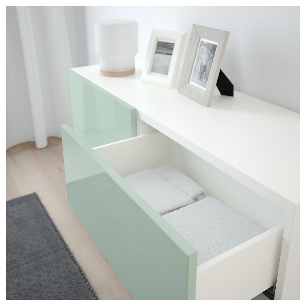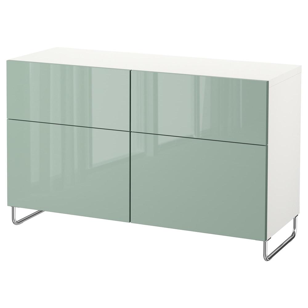 БЕСТО Комб для хран с дверц/ящ - белый/Сельсвикен глянцевый/серо-зеленый светлый, направляющие ящика,нажимные 0.0/5 оценка (0 голосов)