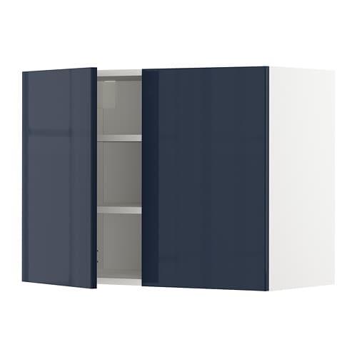 МЕТОД Навесной шкаф с полками/2дверцы - белый, Ерста глянцевый черно-синий, 80x60 см