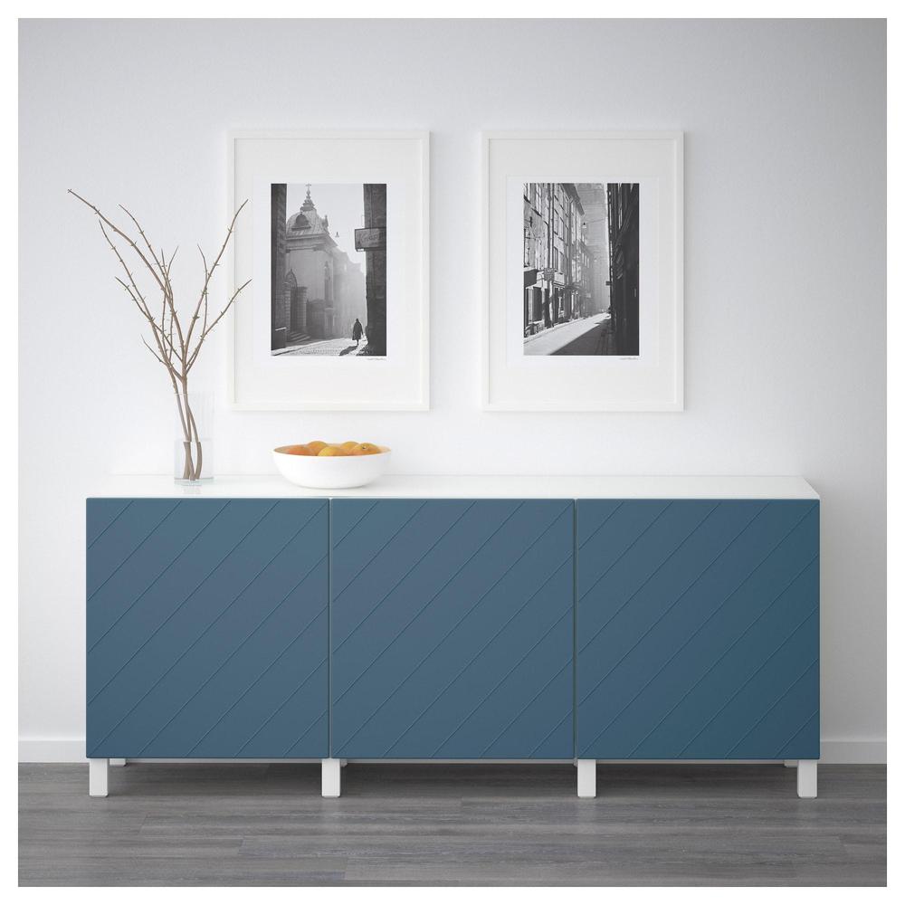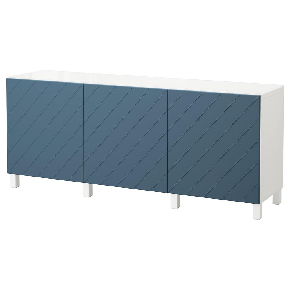 БЕСТО Комбинация для хранения с дверцами - белый/Халлставик темно-синий