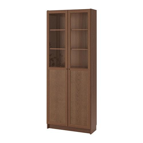 БИЛЛИ Стеллаж/панельные/стеклянные двери - коричневый/ясеневый шпон
