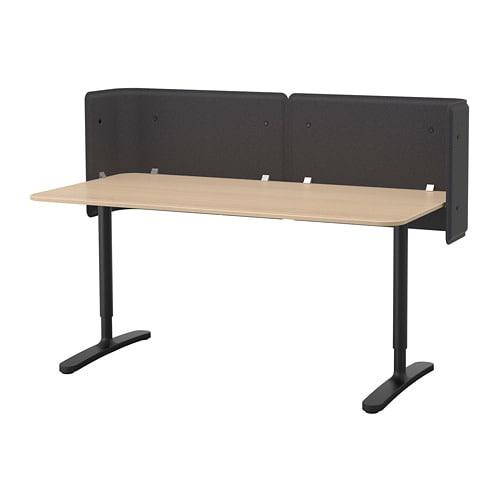 БЕКАНТ Стол для приемной - дубовый шпон, беленый/черный