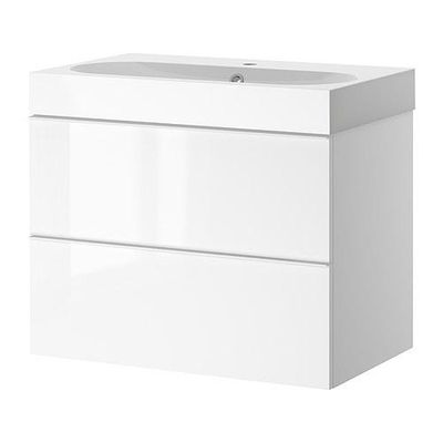 ГОДМОРГОН/БРОВИКЕН Шкаф для раковины с 2 ящ - глянцевый белый, 80x48x68 см