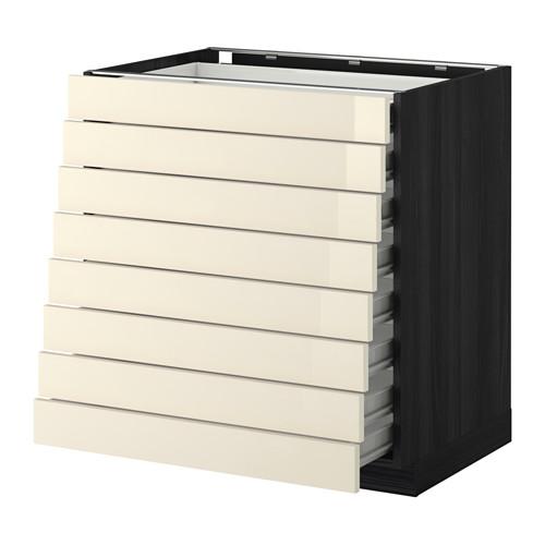 МЕТОД / ФОРВАРА Наполн шкаф 8 фронт/8 низк ящиков - 80x60 см, Рингульт глянцевый кремовый, под дерево черный
